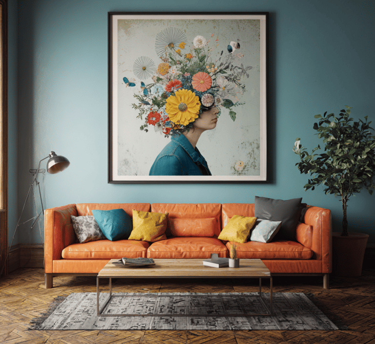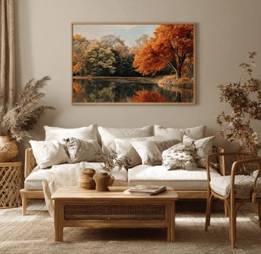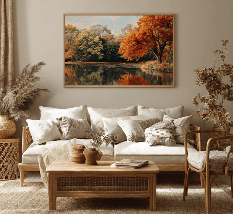 Another trick? Rotate your art with the seasons. Bright florals in spring, ocean blues in summer, warm leaves for fall, cozy holiday scenes in winter—you get the idea. It’s an easy swap that keeps your living room feeling fresh year-round. Print, frame, hang, repeat.
