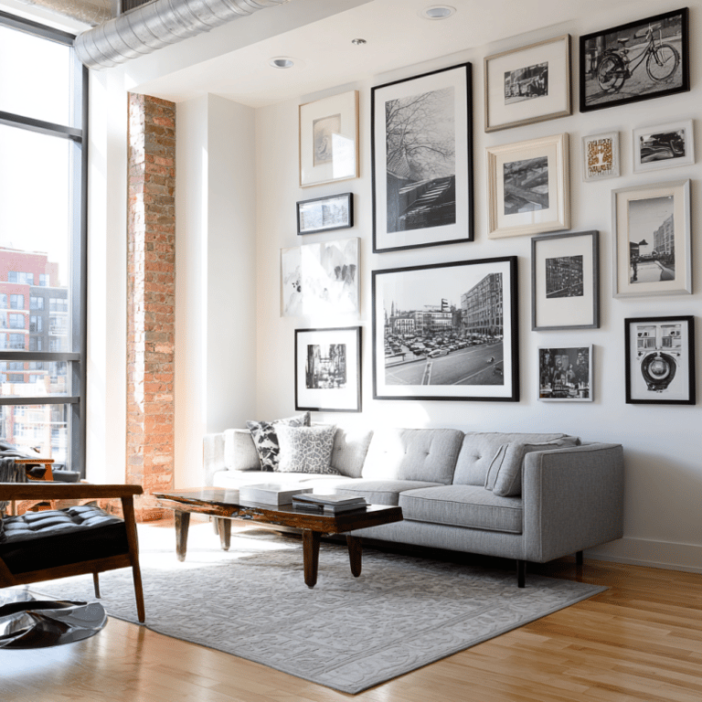 If you love clean lines, start with a grid layout. It’s one of those setups that never fails. Grab a handful of matching frames—square or rectangle—and line them up with just a touch of breathing room. The result? Polished, intentional, and easy on the eyes. It’s a simple formula, but it works whether you’re hanging family photos, abstract art, or vintage prints.