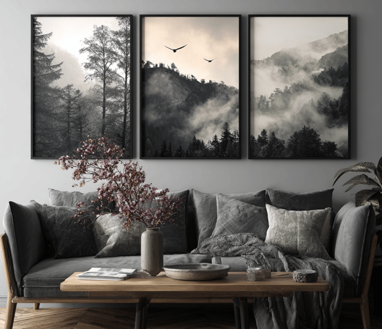Nature prints bring a different kind of energy. Landscapes, flowers, even wildlife sketches—they create calm and warmth indoors. If your space gets a lot of natural light, these pieces practically glow. And the best part? You can build a nature-themed gallery wall on a tight budget and still get that “wow” factor.