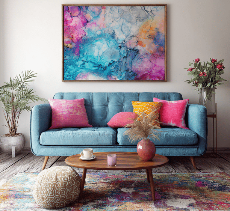 Abstract art is another easy win. Big splashes of color, quirky shapes, designs that don’t follow rules—they pull the eye and set the tone of the room. Plenty of artists sell digital downloads on sites like Etsy, so you can grab something bold without the gallery price tag. Pick colors that play well with your furniture, and suddenly the whole room feels pulled together.