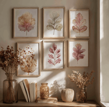 Then there’s botanical art. Sunflowers, mums, dried wheat stalks—they bring the harvest season inside without being too heavy. The nice part? They’re versatile. These prints still look good when Thanksgiving rolls around and even into December. No rush to pack them up.