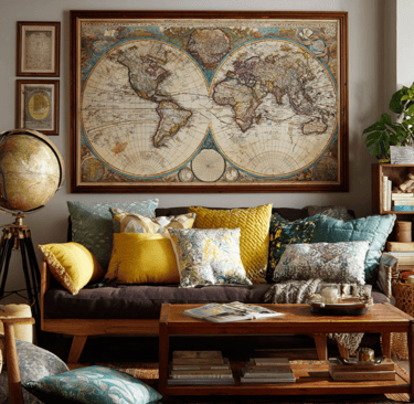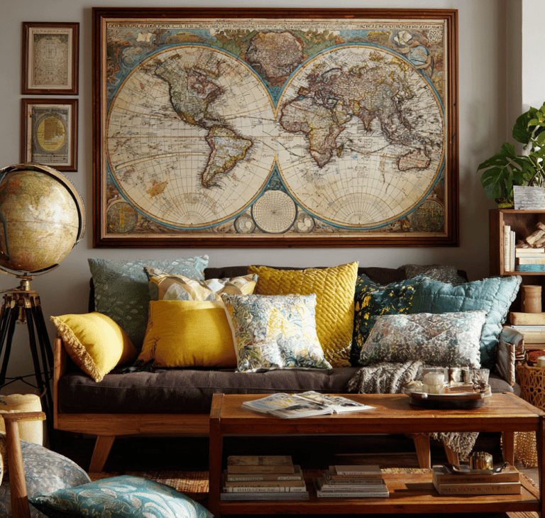 Antique maps are another option, and they’re never boring. Big world maps, old city plans, even vintage star charts—they all look like artwork on their own. Oversized versions can dominate a wall, while smaller prints slide into a gallery wall easily. They bring history, curiosity, and just a bit of sophistication.