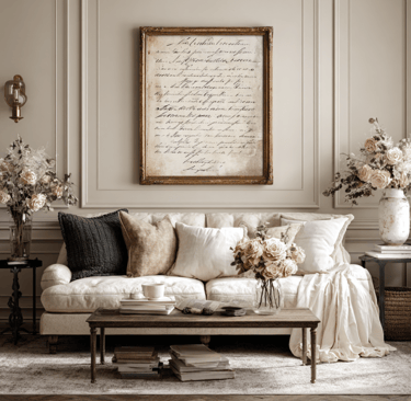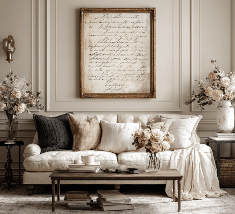 Another idea—vintage French quotes. Old-fashioned lettering, phrases about love and life, the kind of script that feels like it’s from another era. These prints add personality without being loud. Frame them simply, and they bring in elegance. Or go ornate with the frames if you want extra drama. Either way, they tell a story and get people asking, “Where’d you find that?”